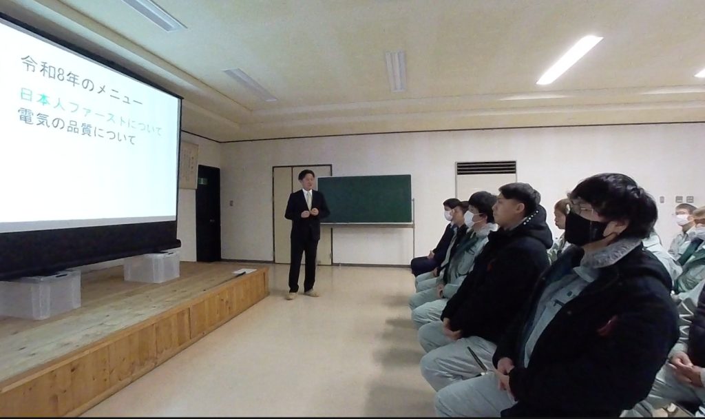 神下組では、全体の集まる朝礼は月2回(1日と15日)ですが、新年最初だけは、神下組と神下商事全員を対象に社長から長めの挨拶がありました。