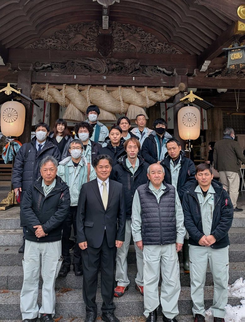 挨拶の後、みんなで越中一宮高瀬神社へ参拝し、今年の無事故無災害を祈念してきます。