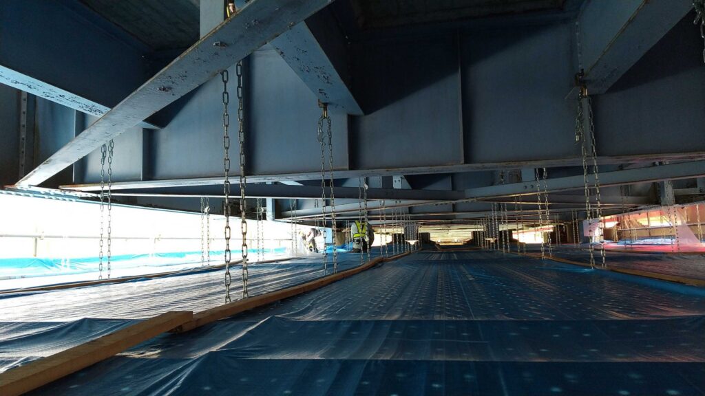 今回はコンクリート部分のクラックなどを補修する目的で足場を設置した状況の確認でしたが、道路を走っていても気づかないうちに傷みが出てきていますね。