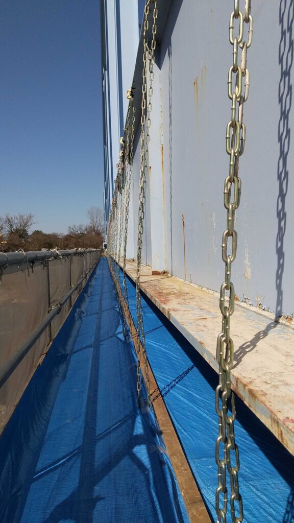 昔は赤い橋が今は水色となっていますが、その塗装も劣化が進んでいました。道路を使用したままの工事ですので通行車両に注意して無事故無災害で工事完了を目指します。