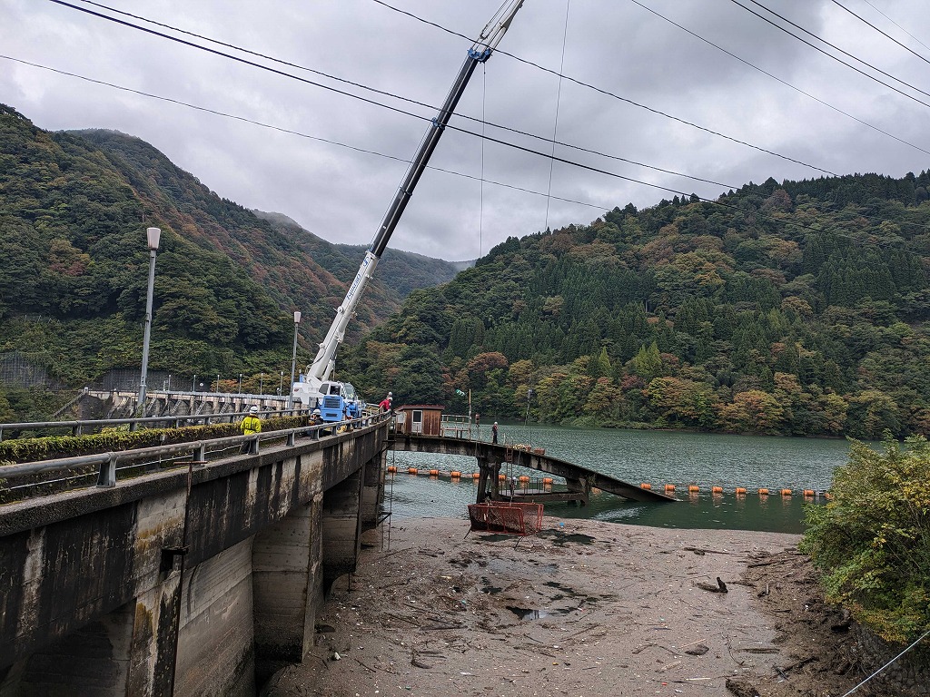 小牧ダムに溜まった流木など除去をさせてもらっています。